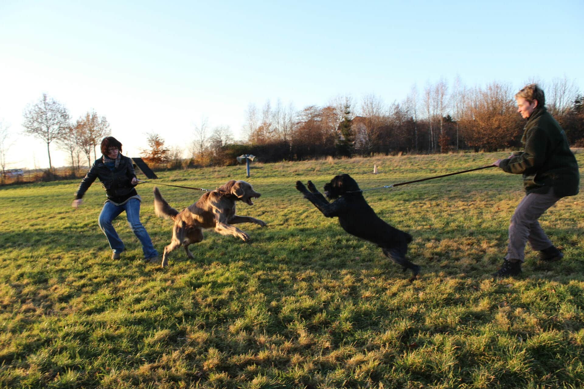 Charlies zwischenzeitlich erfolgte Kastration hatte zu keiner Änderung seines Verhaltens gegenüber gleichgeschlechtlichen Hunden geführt. Durch das ständige Führen an der Leine und mit ziemlicher Sicherheit auch durch den Zwischenfall mit dem Setter, hatte sich Charlies Aggressionsverhalten auch in angeleintem Zustand extrem verstärkt. Nach einer Begutachtung des Hundes und einer Videoaufzeichnung eines Team Tests konnte ich Beate Hoffnungen machen, dass wir das Problem gemeinsam mit hoher Wahrscheinlichkeit beheben können. Es fiel ihr schwer zu glauben, dass man ihr und Charlie in einem 10 tägigen Lehrgang helfen könnte. Nachdem ich Beate an einem laufenden Kurs und einigen Fallbeispielen die Erfolge zeigte, war sie bereit, einen Lehrgang zu besuchen.