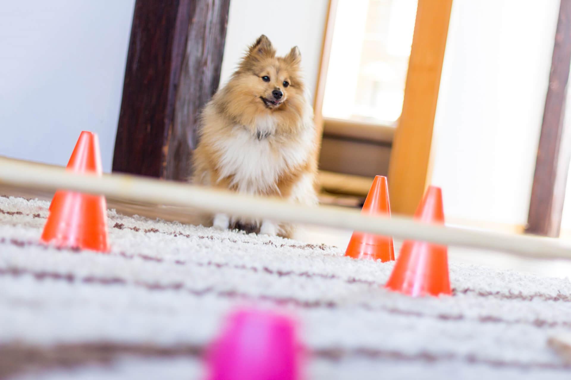 Wer kennt das nicht: Das Wetter im Winter ist eher trübe, der Hundesportplatz wegen der Witterung verwaist oder gar abgeschlossen, aber unsere Fellnase ist quietschfidel und wartet nur darauf, dass sie sich endlich wieder sportlich austoben darf – so, wie sie es sonst auch gewohnt ist. Was also tun? Das Zauberwort heißt “Indoortraining”. Hier kommt die Lösung: Mit wenigen Handgriffen ist ein spannender Indoortrainingsplatz für trübe Wintertage aufgebaut.